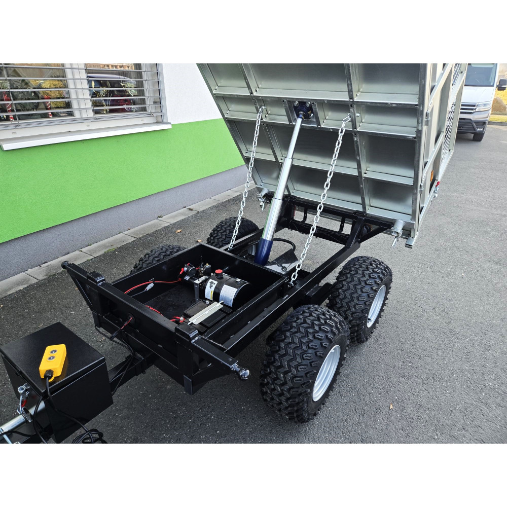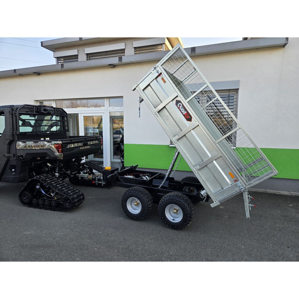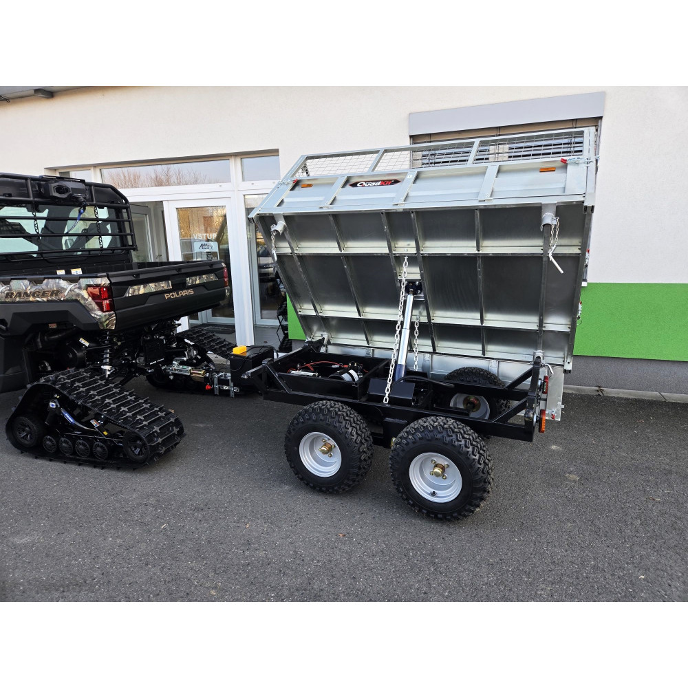 Nabízíme k prodeji nový třístraně sklopný vozík Quadkit s vnitřními rozměry ložné plochy 204x124 cm. Vhodný zejména za UTV a čtyřkolky. Sklápění hydraulika poháněná vlastní trakční baterií, která vydrží cca 40 sklopení. Součástí dodávky je i nabíječka baterie a nádstavky bočnic viz. foto. Cena uvedena s DPH odpočet DPH možný. Doprava individuální.